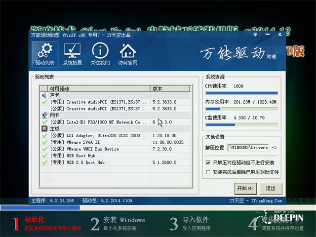 - 集成常见硬件驱动,智能识别+预解压技术,绝大多数硬件可以快速自动安装相应的驱动。
