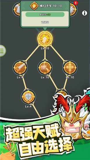技能加持,随机掉落装备和技能搭配,助力主公驰骋沙场,战无不胜。
