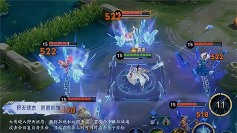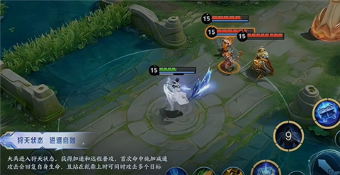 大禹的技能连招,全部依赖其自身被动,被动会为大禹带来戊鼎的加成,当角色升级后,戊鼎数量提升,带给大禹和队友治疗和速度加成效果,提升团队的整体战力和生存能力。