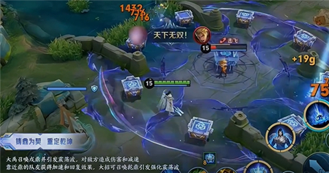 第三套,残血反杀使用,3闪12A,首先用大招传送,在对敌军造成震荡击飞效果后,使用闪现功能拉开和对手的距离,再使用一技能击退敌人,最后二技能快速回血完成反攻,这套技能的缺点就是,如果不能一次秒杀敌人,很可能被敌人反控制,这时大禹本身的坦度就非常重要了。