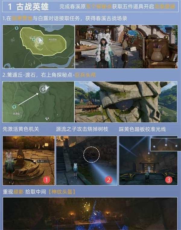 1、古战英雄,完成春溪原任务后,进入五个探秘点获取五件道具,开启获得沧浪壁画