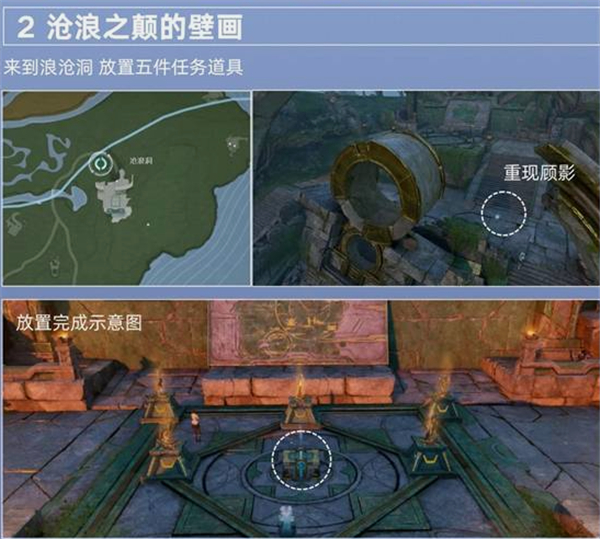2、沧浪之巅的笔画,来到沧浪洞,放下五件任务道具即可