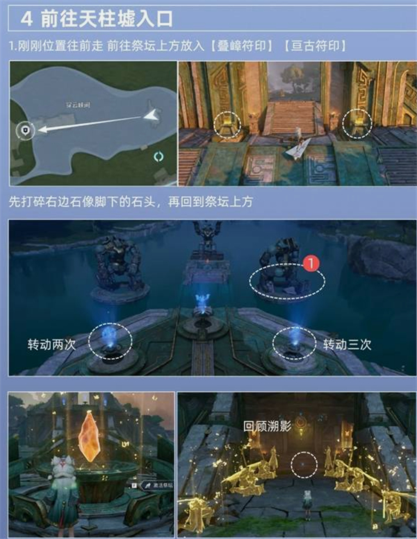 刚刚位置向前走,前往祭坛上方放入叠嶂符印,亘古符印
