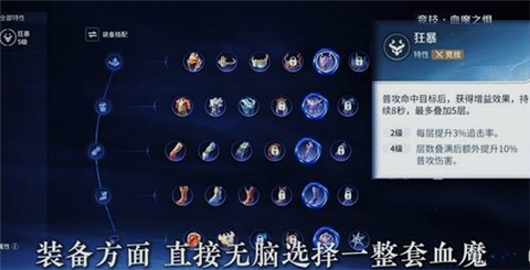 作为T0级别的强力英雄,冷春的实战性之强也是经过玩家们检验的,如果说无脑选择一套合适装备的话,小编一定建议大家选择全套的“血魔装备,血魔装备可以提升角色续航能力,也可以提升角色的伤害以及生存能力,随着冷春的等级提升,这些属性也会越来越强。