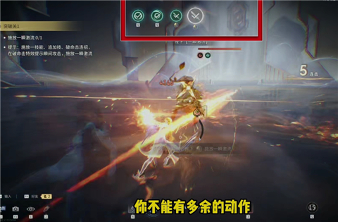 进行突破挑战的时候,首先完成一次技能释放--第二段普攻触发--第三段技能收尾动作,全程禁止做出其他的多余动作