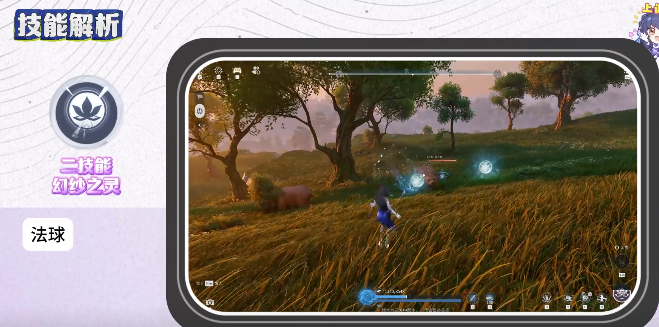 三技能:幻纱缠心—立即获得一次二技能储备,强化状态中二技能一次可丢三个法球,普攻还能为队友回血。