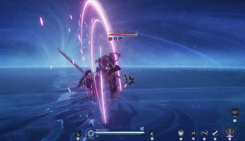 操作顺序:轻剑 2 技能(投剑减速)→ 1 技能 + 普攻 +1 技能(快速叠 5 层沉默)→ 切换重剑(大招)→ 2 技能推人 → 1 技能蓄力斩。