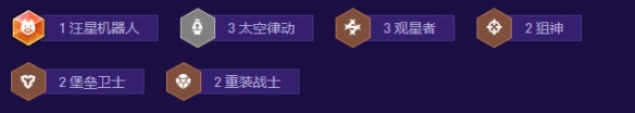 羁绊构成:3太空律动, 3观星者, 1汪星机器人, 2狙神, 2堡垒卫士, 2重装战士