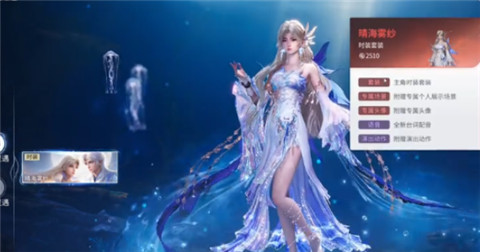 这款皮肤定位为传说级限定时装套装,属于游戏高阶外观,无任何战力属性加成,仅用于角色外观装饰与收藏。套装为部件化设计,包含披风、上衣、裤子、鞋子、发饰及挂件共6类独立部件,需集齐所有部件才能解锁完整套装外观,其中披风、上衣为核心视觉部件,辨识度最高。特点以蓝白渐变为主色调,融入雾纱材质与动态水纹特效,兼具东方仙侠气质与海洋元素,角色移动时会呈现波光粼粼的光影效果,待机状态下有专属动态表现。