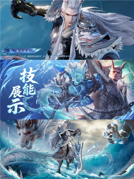 1、一技能:普通状态下是裹挟水龙卷的蓝色光刃,开启大招后化为蓝色水龙,极具冲击力