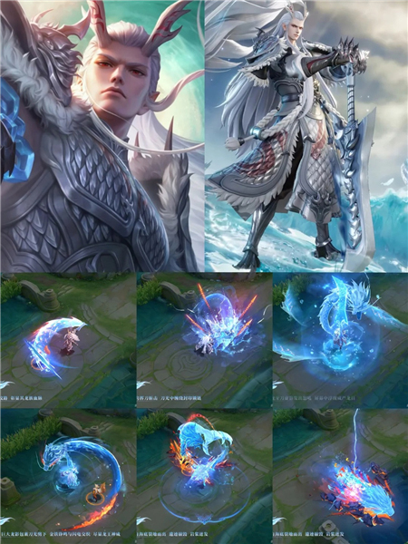 3、大招:铠化身为龙形真身,身周是雨水和浪潮,屏幕边缘有浪潮特效,持续伤害变为天雷特效-12,有评论认为其特效质量甚至超过了无双限定和荣耀典藏。