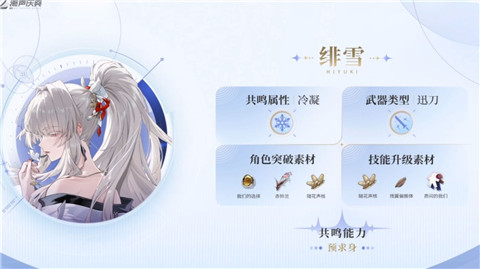 绯雪是3.3版本限定五星角色,属性为冷凝,武器类型为迅刀,定位是单体+群体输出,核心依赖霜渐效应叠加冷凝伤害,养成优先级为:角色突破>技能升级>专武养成>声骸优化。其养成材料分为通用材料与专属材料,通用材料可提前囤积,专属材料需版本更新后通过指定副本、活动获取。
