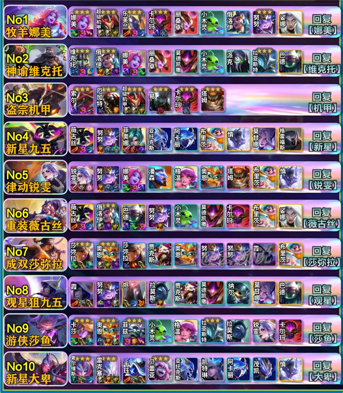 总结:以上就是目前S17赛季里,大部分热门上分的阵容码,玩家可以直接在游戏里一键导入。但需要注意的是,所有阵容码都具有时效性,并需要结合对局中的实际来牌灵活运用,希望遇上的内容对你们有所帮助。