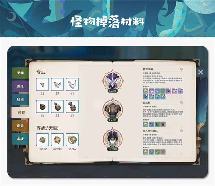 二、天赋升级材料(共9级,单次升级消耗如下)