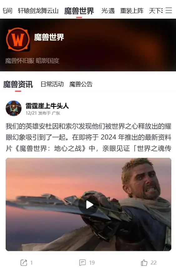网易大神是网友游戏推出的关于网易旗下游戏的一个攻略、社交平台,在上面涵盖了几乎网易全部的端游和手游社区。最近有眼尖的小伙伴在网易大神之中发现了魔兽世界社区一时之间魔兽世界社区已重新在网易大神上线