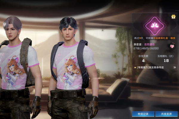 在星球重启游戏里,游戏玩家在等级14级庄园等级2级后,然后我们就可以跟自己亲密度达到对应要求的好友一起开通一起全新的好友功能。就是室友功能,玩家在游戏中,可以跟自己的好友共享游戏......