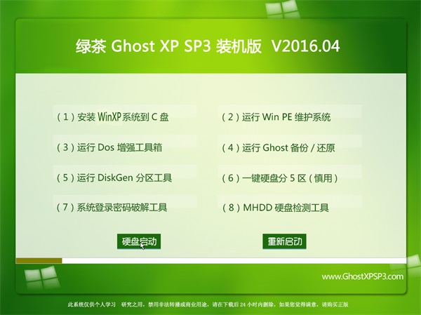 绿茶系统 GHOST XP SP3 装机版 V2016.04