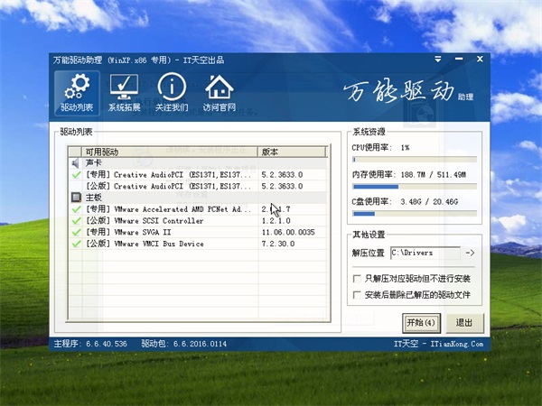 * 安装过程会运行自主开发的驱动选择工具,此工具可智能判断所有的电脑硬件型号,最大限度地避免了因驱动冲突而蓝屏的现象。