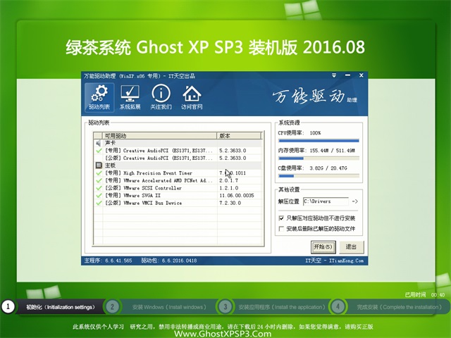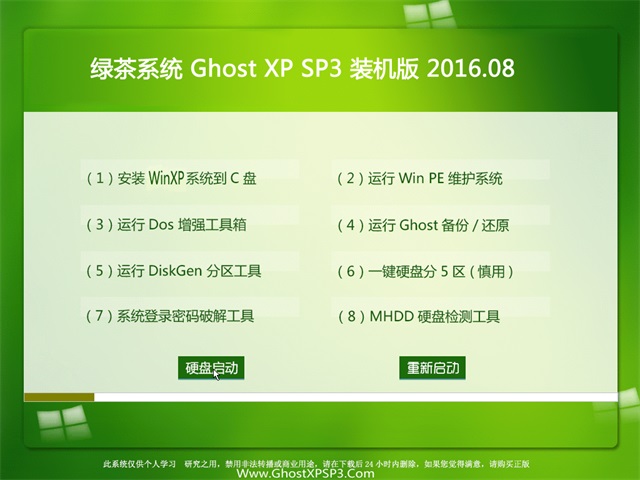 绿茶系统 GHOST XP SP3 装机版 V2016.08