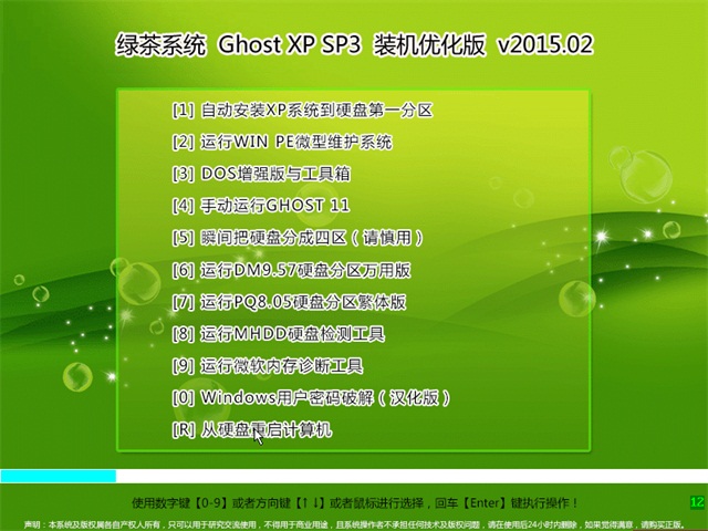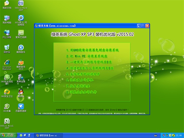 绿茶系统 Ghost XP SP3 装机优化版 V2015.02