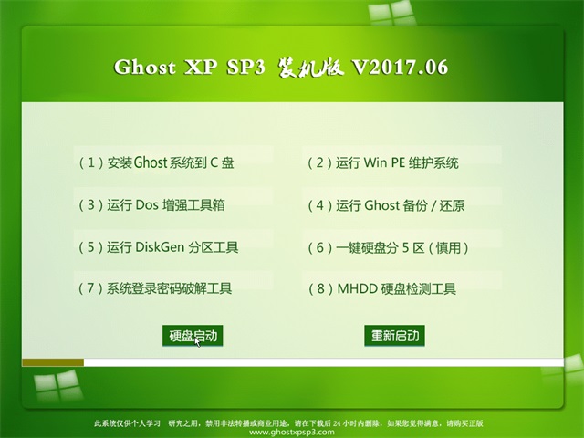 绿茶系统XP装机版系统版权属各自产权人所有,只用于个人封装技术研究交流使用,不得用于商业用途,且本系统制作者不承担任何技术及版权问题,请在试用后24小时内删除。如果您对本系统有任何意见和建议,欢迎到论坛反馈,请购买正版Windows操作系统软件!