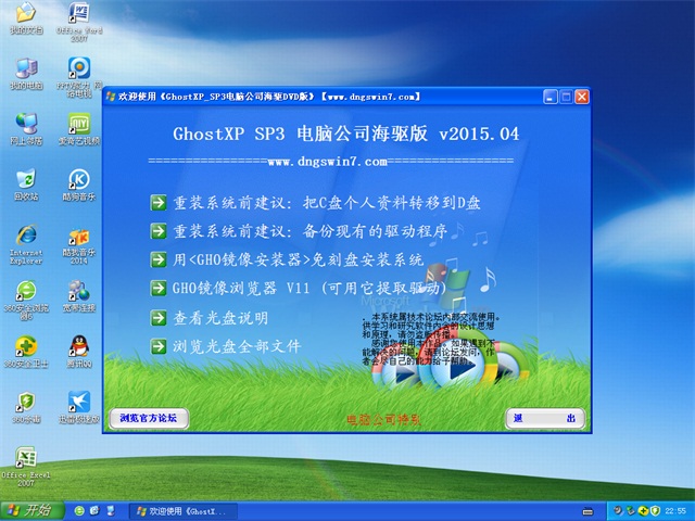 * 源安装盘采用Windows XP SP3官方免激活版,集成系统补丁至2015.04。(可通过微软漏洞扫描和卫士漏洞扫描)