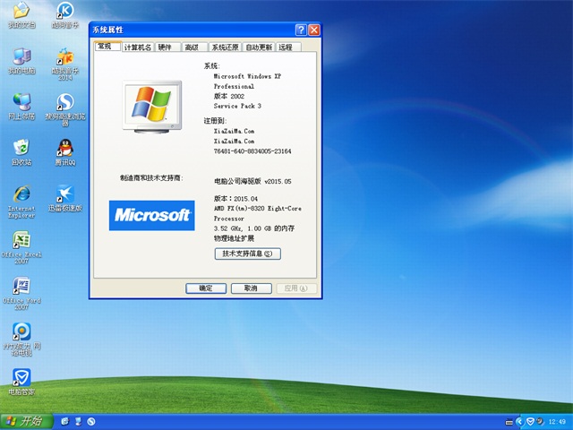 * 办公套件采用的是精简版Office2007,集成Office补丁至2015.05(可通过微软漏洞扫描和卫士漏洞扫描)