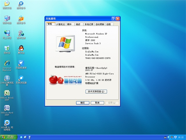 == 欢迎使用 番茄花园 Ghost XP SP3 海量驱动装机版 v2015.07 ==