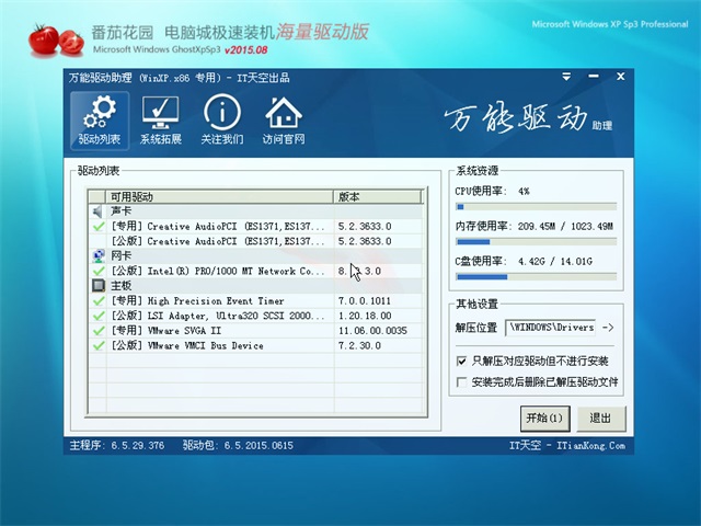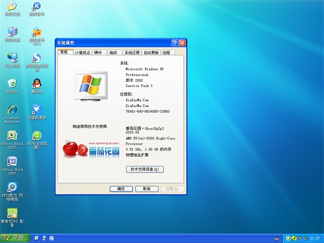 番茄花园 GHOST XP SP3 海量驱动极速版 V2015.08