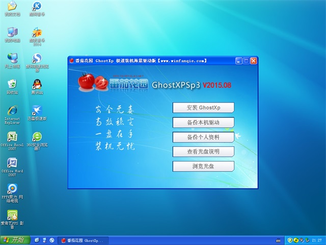 番茄花园 GHOST XP SP3 海量驱动版 V2015.08