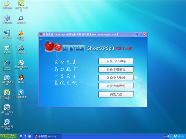 番茄花园 GHOST XP SP3 海量驱动版 V2015.09
