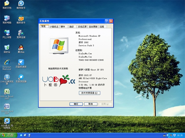 * 办公套件采用的是精简版Office2007,包含常用三大组件