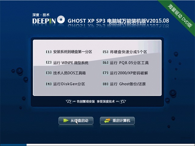 深度技术 GHOST XP SP3 电脑城万能装机版 V2015.08