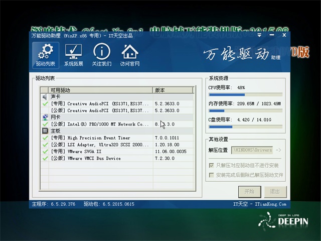 * 安装过程会运行自主开发的驱动选择工具,此工具可智能判断所有的电脑硬件型号,最大限度地避免了因驱动冲突而蓝屏的现象。