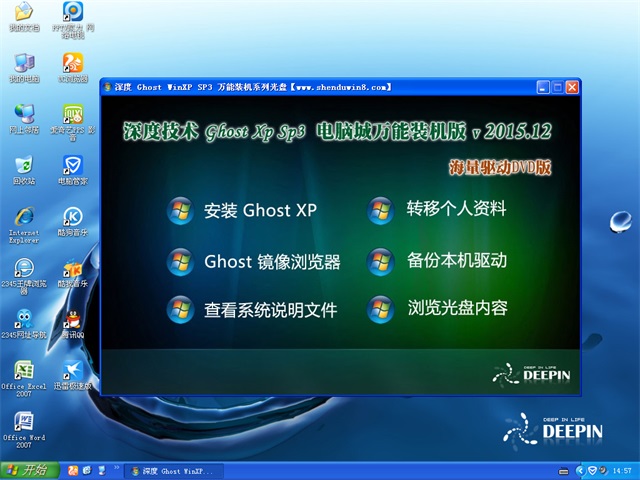 深度技术 GHOST XP SP3 装机版 V2015.12