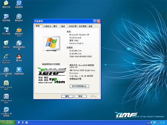 * 源安装盘采用Windows XP SP3官方免激活版,集成系统补丁至2015.05。(可通过微软漏洞扫描和金山漏洞扫描)