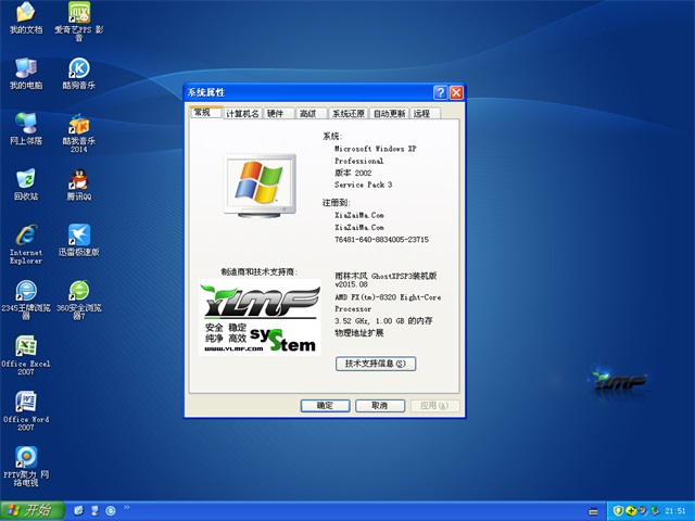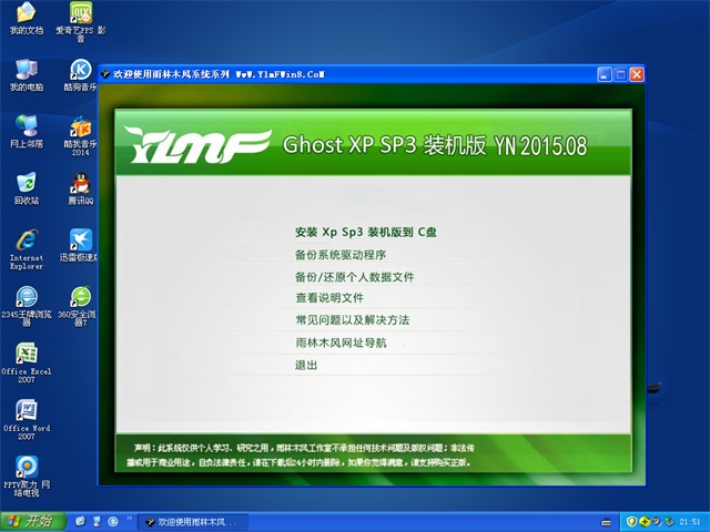 雨林木风 GHOST XP SP3 稳定装机版 V2015.08