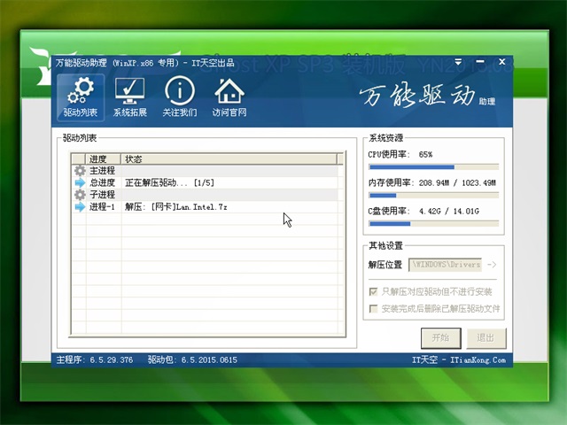 * 安装过程会运行自主开发的驱动选择工具,此工具可智能判断所有的电脑硬件型号,最大限度地避免了因驱动冲突而蓝屏的现象。