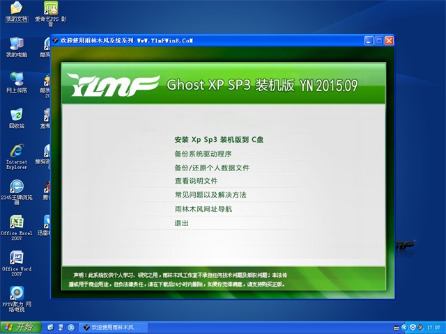 雨林木风 GHOST XP SP3 装机版 V2015.09
