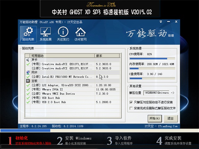 * 集成了数百种常见硬件驱动,经过作者精心测试,几乎所有驱动能自动识别并安装好。